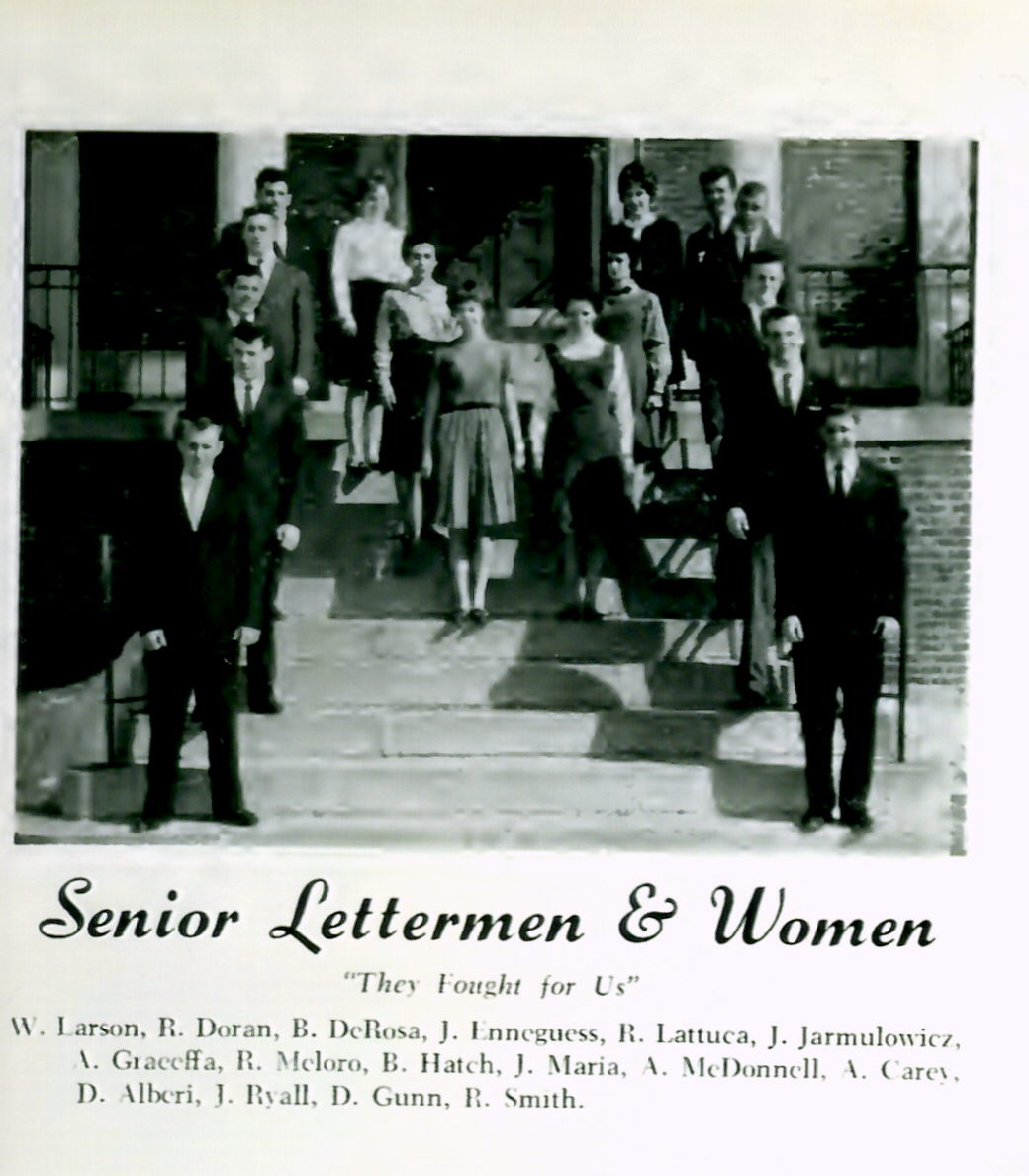 7. The lettermen and letterwomen without their sweaters in 1962 yearbook