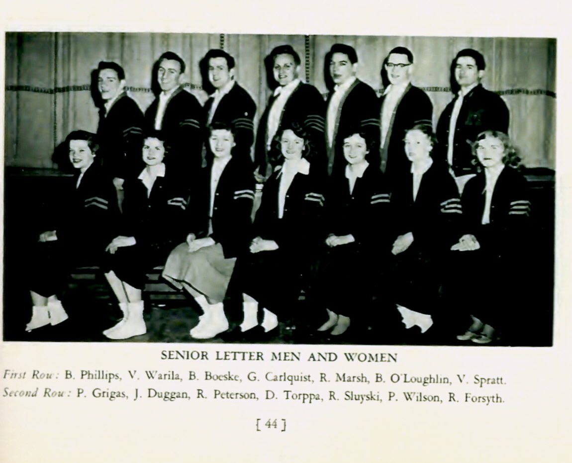 The typical “letter sweater” was awarded to seniors who played enough to earn their letter. Through the 1960s, for boys it was football, basketball, and baseball. For girls, it was field hockey, basketball, and cheerleading.