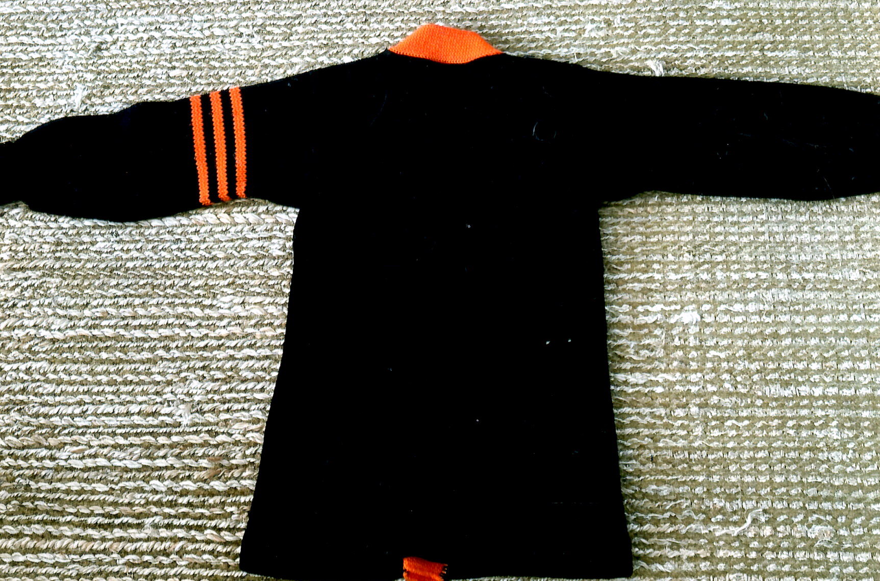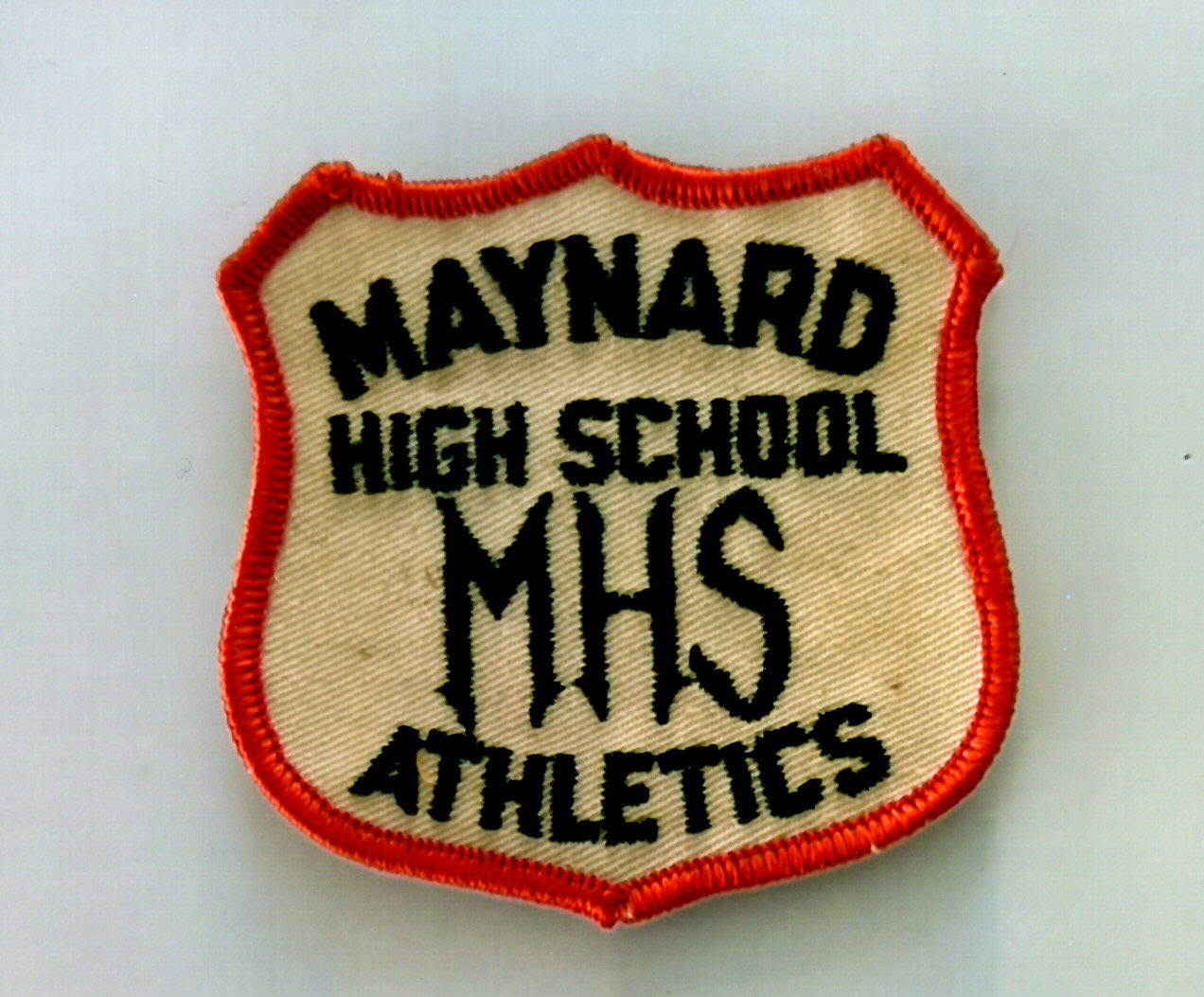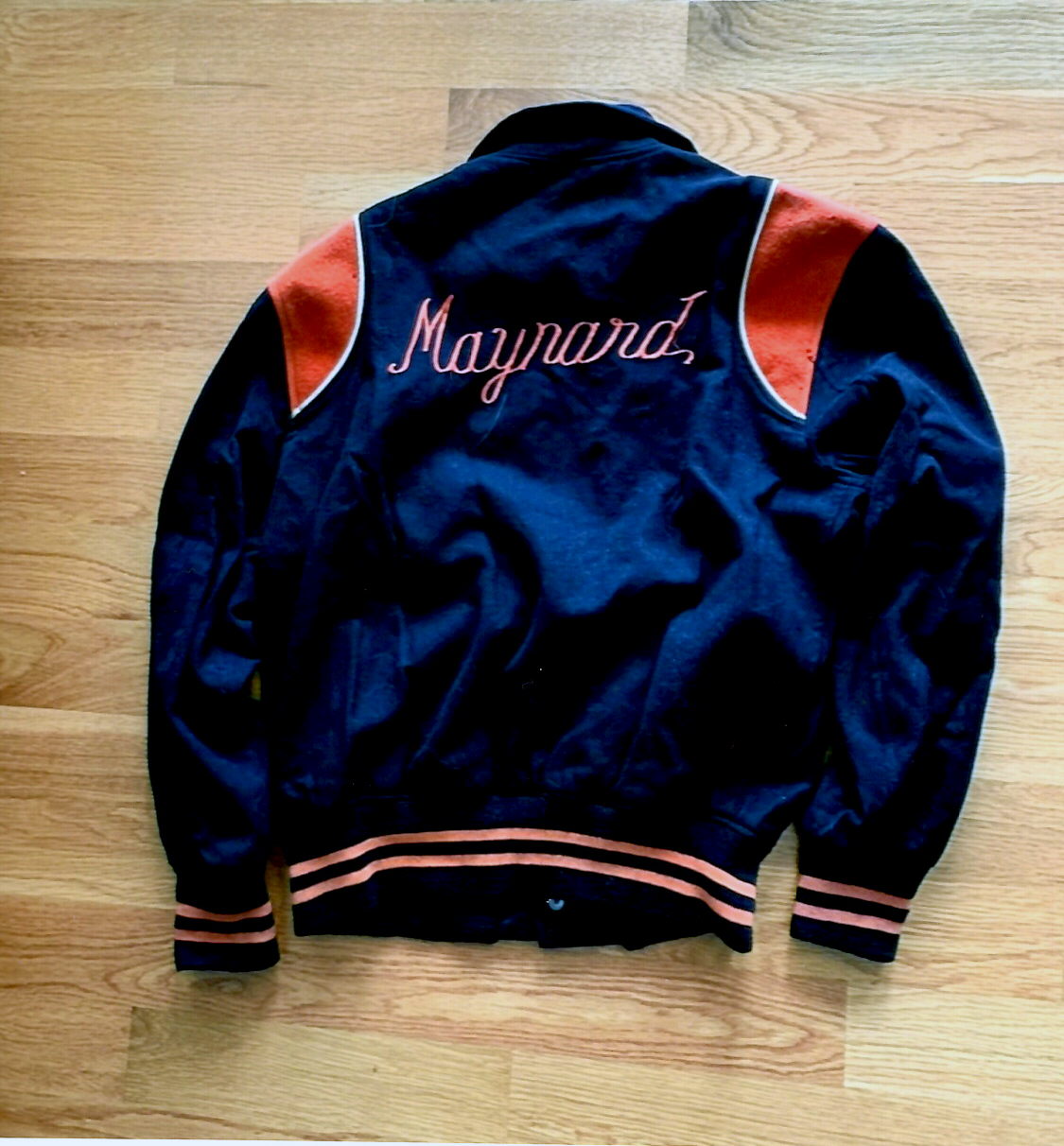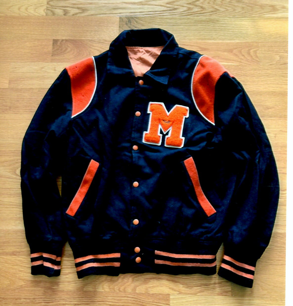 Around 1966, black and orange jackets were given by the Booster Club to seniors who participated in sports. These jackets had the "M" on the left side, over the heart, with the graduating year embroidered on it - in this case "66". The rear of the jacket said "Maynard".