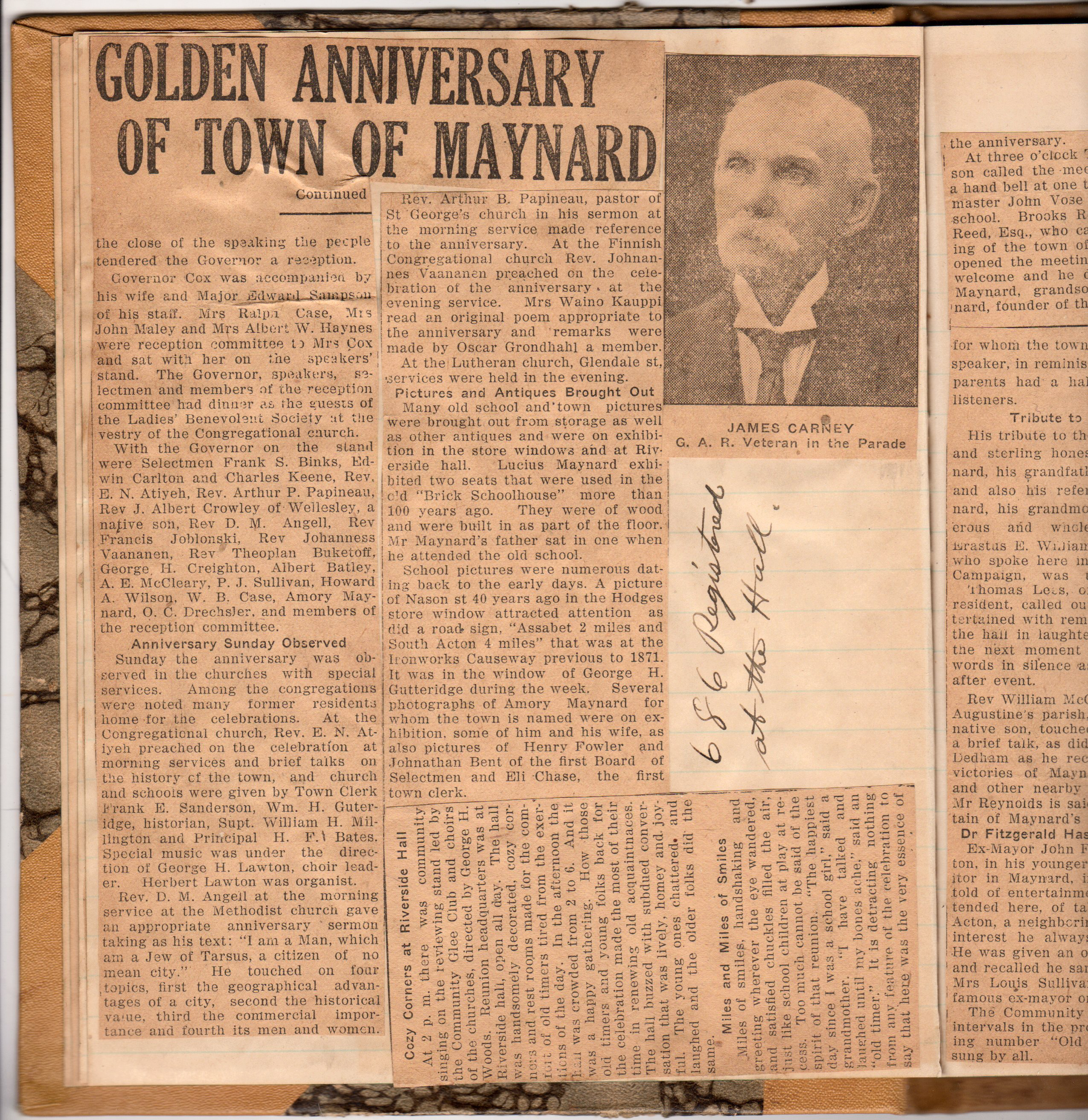 Golden Anniversary of Maynard, Mass Scrapbook - 1921