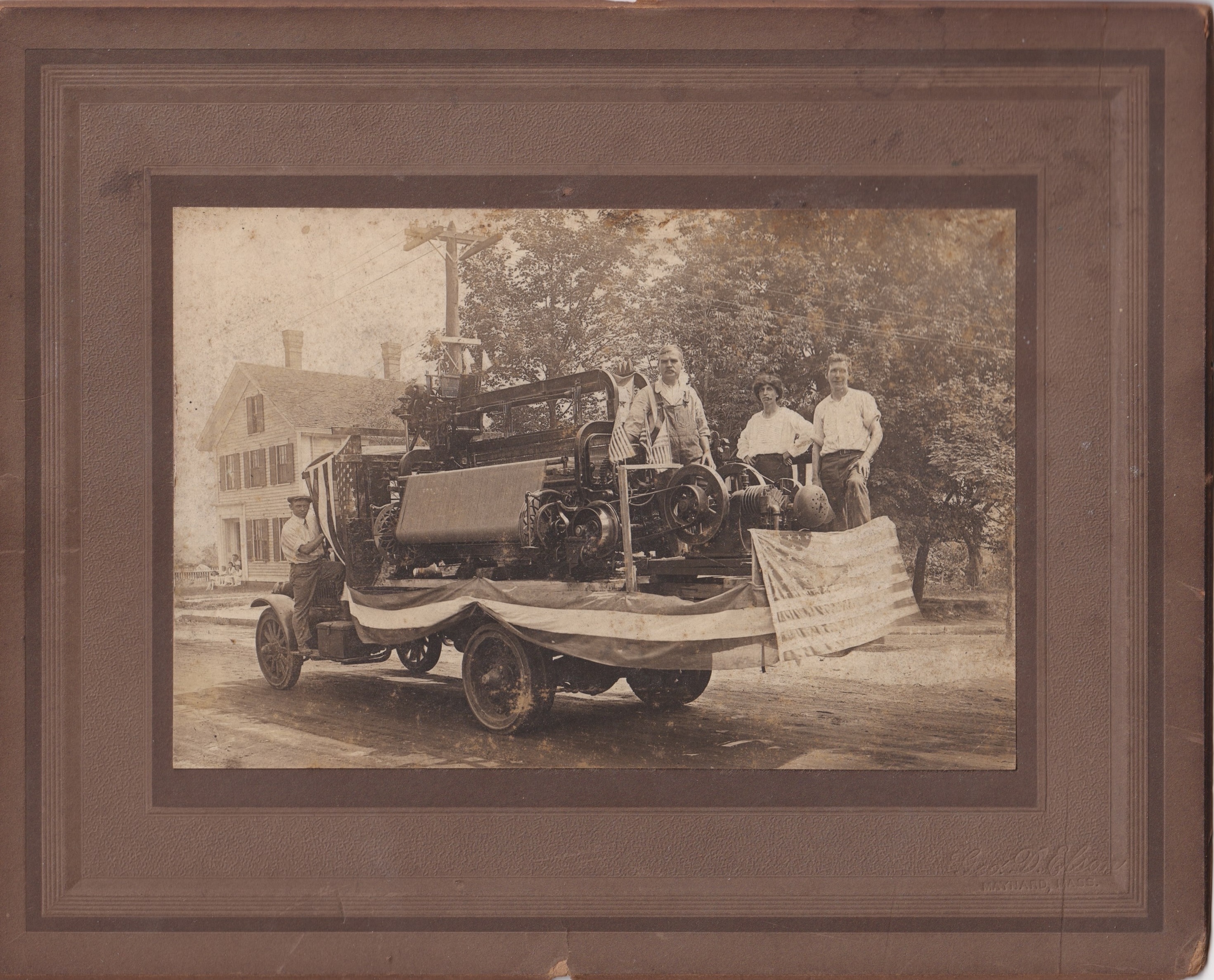 According to a newspaper account of the parade: " ... The other was a loom in operation weaving cloth, a feature presented by the Assabet mills, with John Graham as fixer, Everett Marchant in charge of a portable motor, and Sam Ayotte in the act of weaving." **