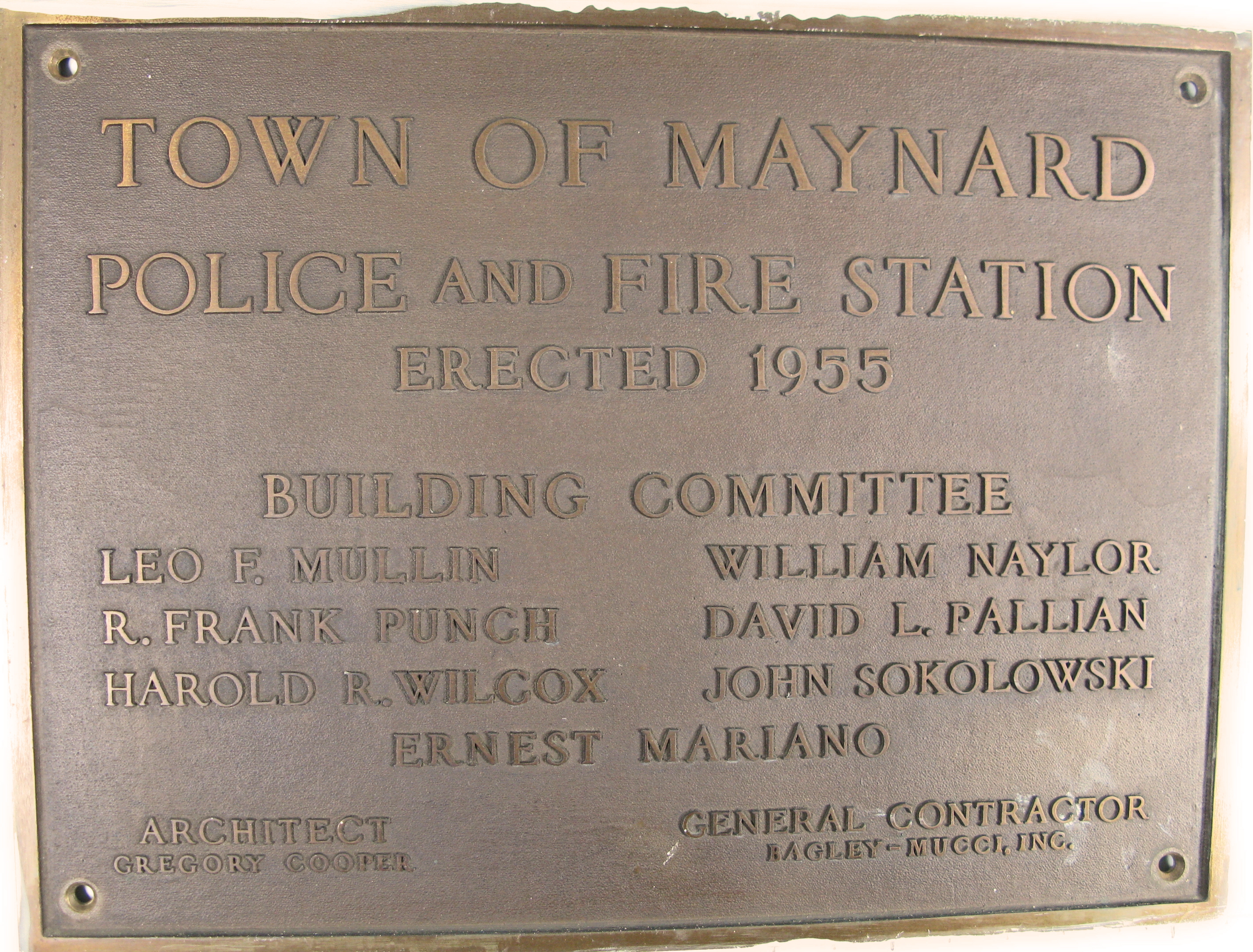 The combined Police and Fire Station was built in 1955 at the intersection of Summer and Acton Streets, 1 Summer Street. The following were instrumental in the project: Leo F. Mullin, R. Frank Punch, Harold R. Wilcox, William Naylor, David L. Pallian, John Sokolowski, Ernest Mariano