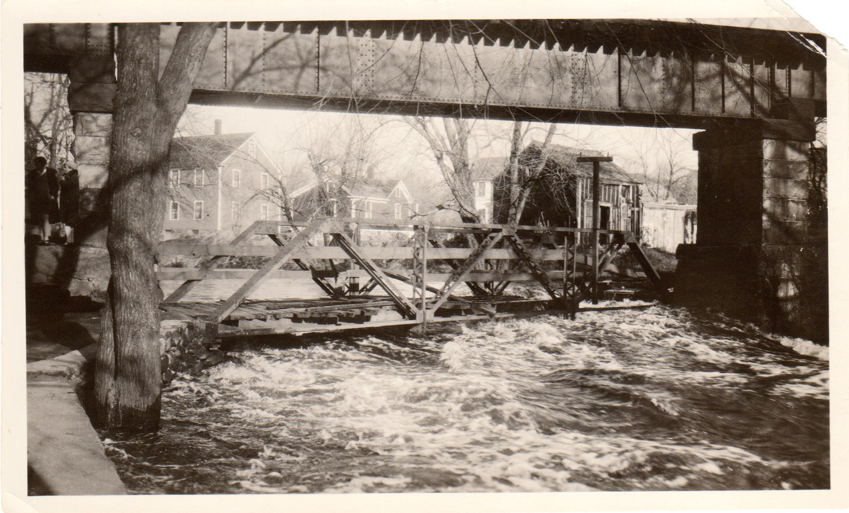 The photo was taken from the west bank of the Assabet River looking up stream. The houses center back are on Euclid Ave. The lower bridge was used for coal trucks leaving coal company to access Main St.