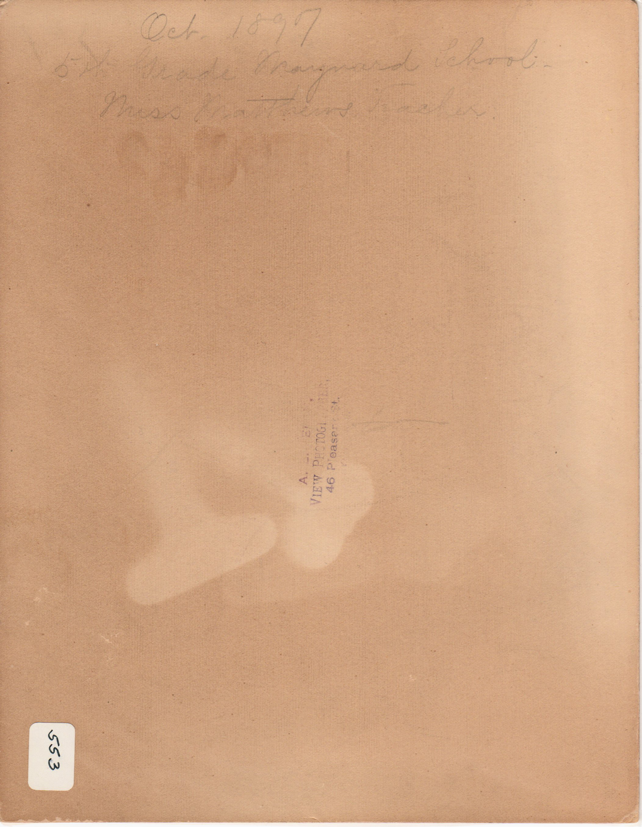 A photo of Grade 5 students in front of the Nason St. School, in 1897.