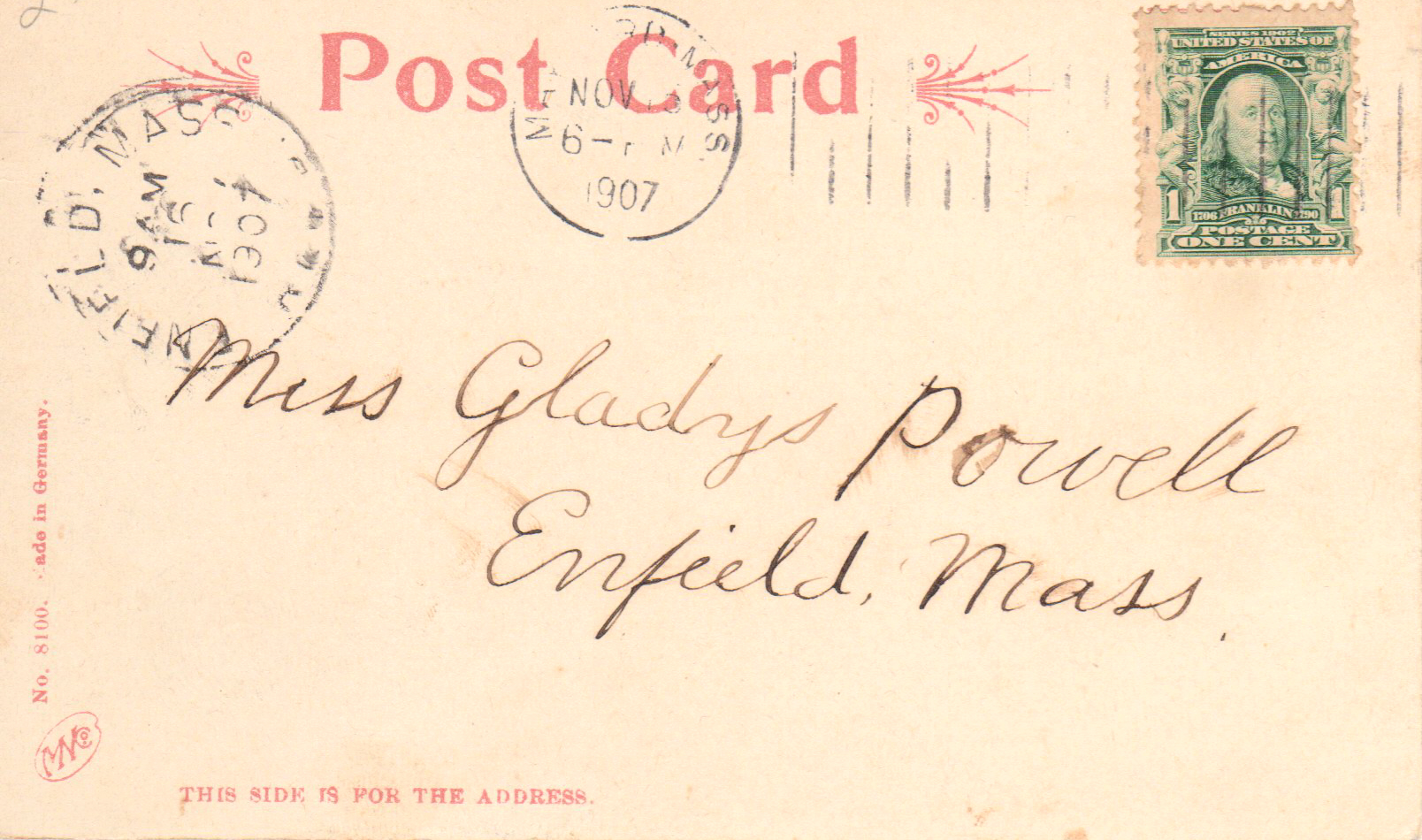 Three slightly different views including postcard with crossed out misname, Mason.