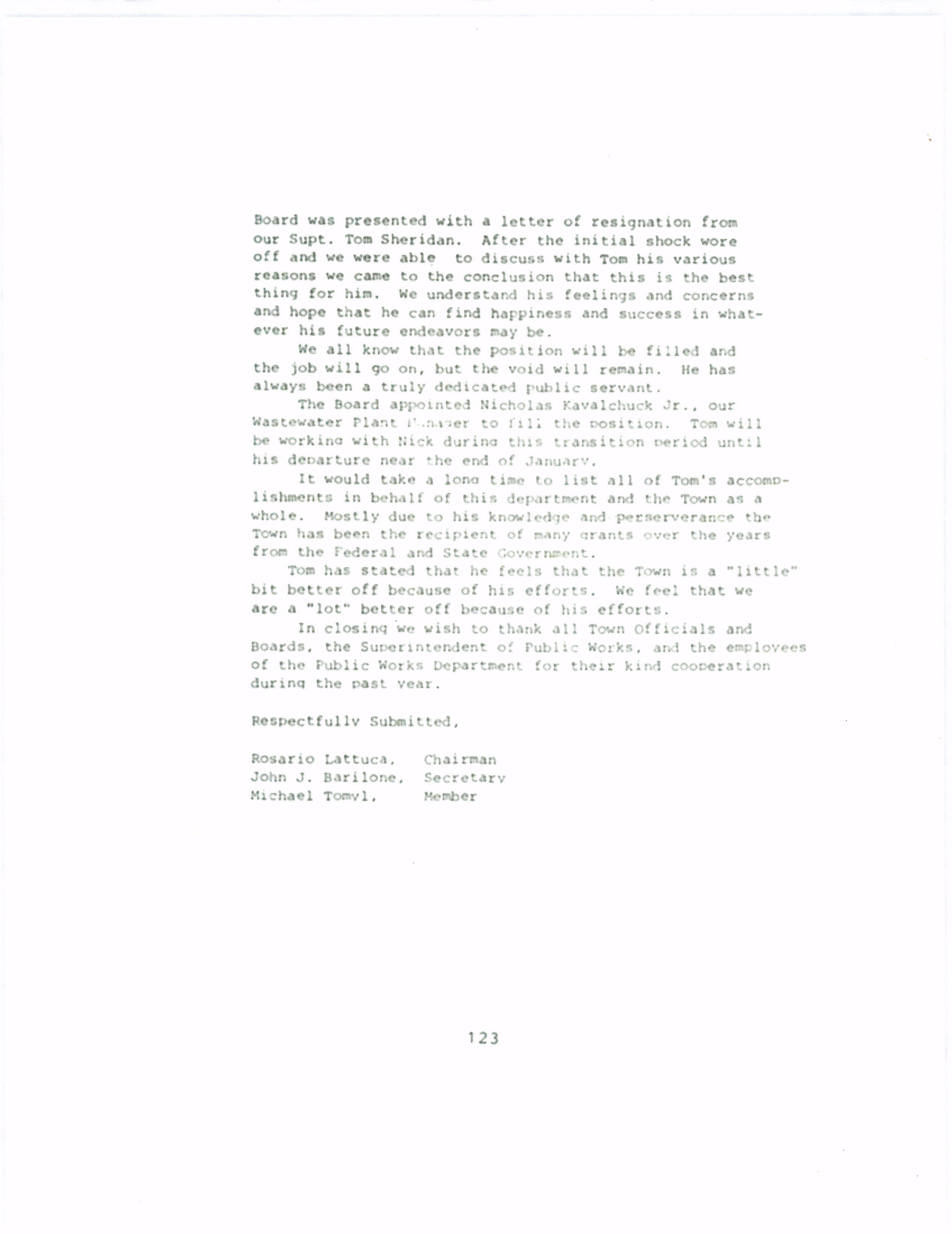 20) Excerpt from the Maynard Board of Public Works Annual Report of 12-31-1987. This was printed on page 123 of the Annual Town Report